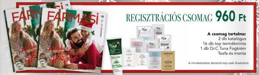Itt megismerheted a forgalomban levő csomagokat, Kettő START csomag és egy Regisztrációs csomag van, melyeket a Farmasi kifejezetten az új belépőknek állított össze. A legkelendőbb termékekből állnak, és nagy árkedvezménnyel adják.